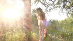 Uma jovem loira passa o dia no jardim, mostra seus peitos grandes e suculentos e começa a se masturbar com os dedos, o que é muito excitante!
