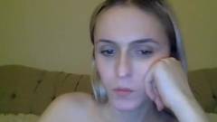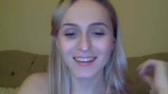 A jovem transexual loira com um rosto bem feliz tem seios pequenos, mas um pau bem grande que ela gosta de mostrar e acariciar na frente da câmera