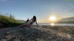 Esta bela jovem de biquíni toma banho de sol na praia e posa para o telefone, expressando como pode fazer melhor!