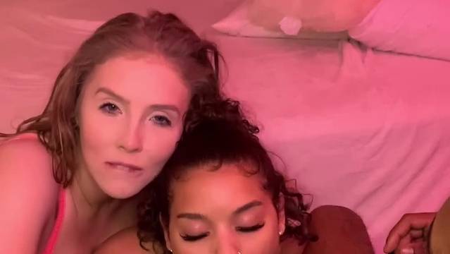 Dos Chicas buscarão a maneira de deixar o pau duro para este negro, que jamais havia sentido duas bocas rodeando sua pija. Elas lhe fazem uma punheta que invejará.