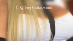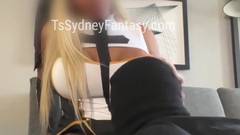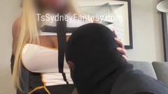 Homem negro com uma máscara chupando o pau de uma mulher trans loira e grande. A vadia tem peitos grandes e uma cabeça de pênis dura