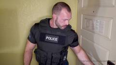 Este policial não conseguiu resistir ao desejo de se juntar a dois negros para uma foda. Ele chupa o pau de ambos e deixa eles foderem o cu dele.