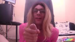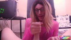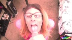 A transexual Jessica Lynne usa seus óculos para chupar um pau em POV e levar uma surra de pica na bunda.
