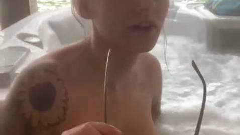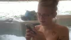 Amadora loira amadora gravando a si mesma nua na webcam em uma piscina