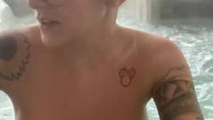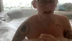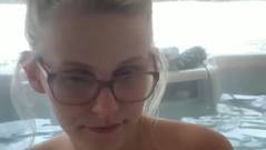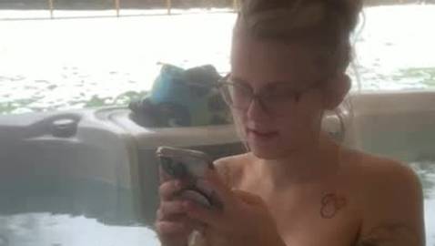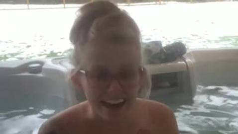 Essa loira amadora com peitos grandes e bunda grande se filma pela webcam enquanto está sentada nua ao lado da piscina no inverno.