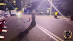 Um homem negro fazendo um vlog na rua encontra uma garota loira caminhando e a convida para transar em seu carro.