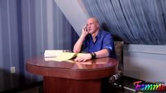 A morena trans vagabunda de meias brancas está prestes a ser fodida por um homem careca com um pau grosso