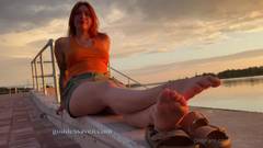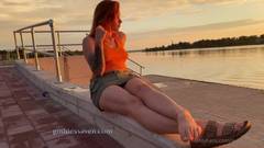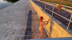 Aven Turinex, ela foi ao lago de madrugada para se despir, mostrar a buceta e os peitos, se masturbar e se filmar para excitá-lo!