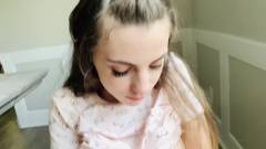 Uma garota bonita com uma boca qualificada, chupando um pau de joelhos e aproveitando cada segundo.