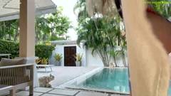 Evaana senta-se à beira da piscina e exibe sua bunda empinada. Ela tem curvas perfeitas e merece ser observada!