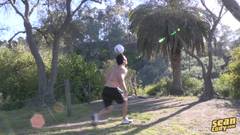 O belo e musculoso Julian se masturba em frente à câmera e dá para ver que ele quer mesmo esvaziar as bolas no sofá!