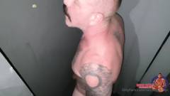 Petrick Garcia oferece sua bunda tatuada para ser fodida através de um buraco na parede, pelo longo pau de Rocco Steele!