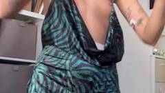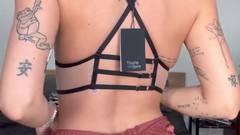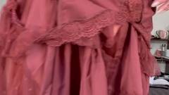 Uma jovem morena não consegue decidir que lingerie usar. Então, ela fica na frente da câmera e mede diferentes roupas enquanto tenta você a experimentá-las