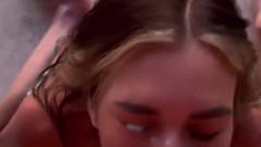 A jovem e bonita vagabunda chupa o pau de um cara porque quer tirar leite dele com sua boceta em um cavaleiro invertido.