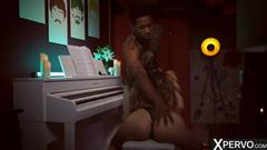 Mary Popiense tem uma aula de piano, mas ela está mais interessada no pau do seu professor negro. Depois de um boquete, será fodida como nunca antes.