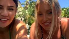 Duas garotas sensuais, duas modelos amadoras, dançam e se tocam para a câmera, usando biquínis sensuais.