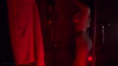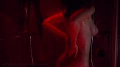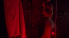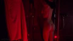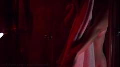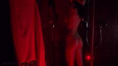 Essa garota de peitos grandes e bunda sexy gosta de se cobrir de vermelho escuro na webcam para encantar seus fãs.