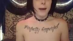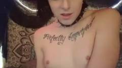 KissingKarma, trans emo e safada, se masturba sozinha na webcam! Com visual gótico, ela toca a pica com tesão, geme de prazer e goza gostoso no show quente.