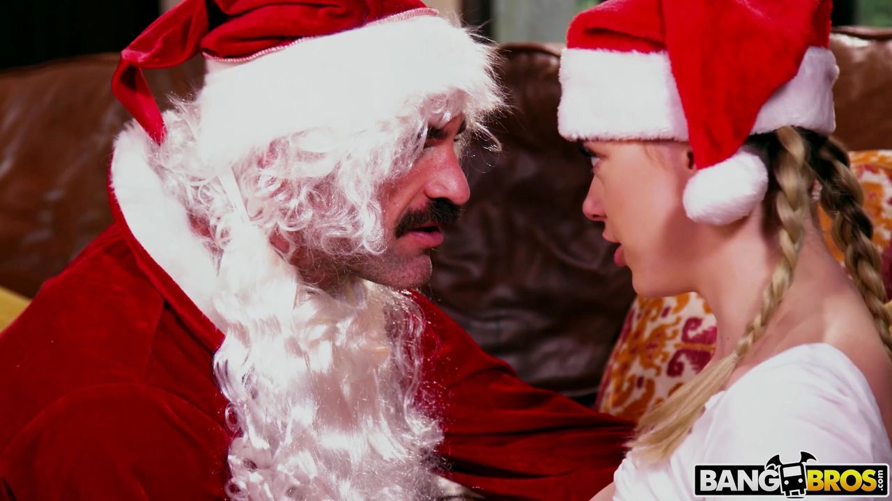 Aquele fodido Papai Noel vai se jogar em uma loirinha, vai saborear sua rica buceta de jovem e dar-lhe estocadas de pau sem saber que ela já não é virgem.