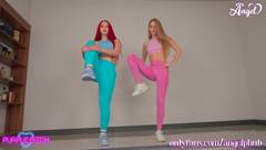 As modelos on-line Purple Bitch e Little Angel treinam juntas e são penetradas duas vezes. Uau!