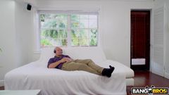 Blake Blossom faz de tudo para que o vizinho a foda, está feliz de ter o pau dele dentro dela, vai desfrutá-lo, ele goza na cara dela