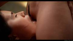Uma jovem morena está tomando um banho relaxante na banheira quando seu amigo entra. Ao ver seu corpo nu, ele começa a acariciá-la, a lamber sua boceta