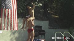 A asiática Jade Kush é fodida ao ar livre por Charles em pé
