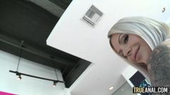 Nina Elle, é a MILF loira com tetas grandes, que se deixa foder o cu apertado antes de um creampie anal. Um beijo negro na posição de cachorrinho a espera