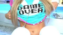 Uma jogadora decide dar aos seus fãs o que eles querem. Sua buceta nua, penetrada por uma máquina de sexo!