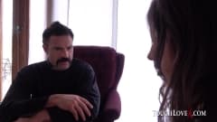 O padrasto Karl está prestes a dar uma lição em sua enteada peituda Ella Knox. Como ela geme, uau!