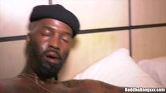 Negro com bunda grande coberta de óleo, chupa pau e é fodido