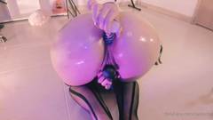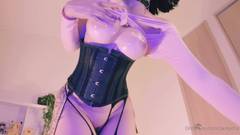 Zachycha gosta de manter a cintura apertada com um espartilho e os peitos grandes à mostra enquanto brinca com brinquedos sexuais e com o traseiro.
