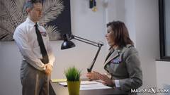 Uma oficial morena do exército convida um colega para transar com ela