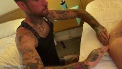 Scoty teve seu pênis castrado e quer que seu amante lamba sua bunda e dê um soco nele para que ele goze.