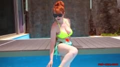 A Red XXX tem peitos grandes, uma buceta madura e molhada e sabe como nos excitar ao se masturbar. Na piscina e na água, ela toca sua buceta sensualmente.