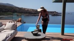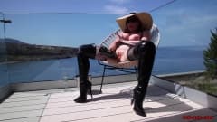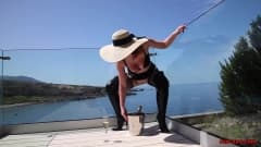 A madura Red xxx tem outro fetiche por masturbação. Ela usa uma garrafa para enfiá-la em sua buceta, enquanto se acaricia sozinha sob a luz do sol de verão.