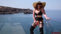 Mature Red XXX masturbação quente ao ar livre com uma garrafa