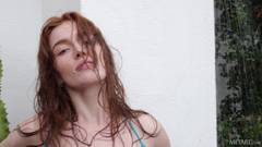 Gia Lissa, uma ruiva sexy, tira lentamente seu biquíni e mostra seus peitos pequenos e sua buceta para a câmera! Divirta-se!