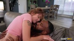 Lucy Foxx e o seu colega de trabalho a trabalhar no sofá. A mesma irá saltitar de tanto prazer que lhe vai proporcionar naquele momento