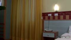 Ele pediu um champanhe para relaxar no quarto depois de uma longa viagem. Quando ele vê a beldade deslumbrante trazendo sua bebida