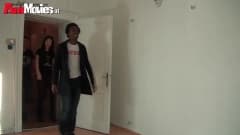 Esta garota morena tem um encontro sexual com dois caras que querem transar com ela ao mesmo tempo. Boa cena de sexo interracial.