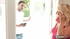 Sandy Pierce, uma mulher madura com peitos grandes, quer ter um grande pau preto na boca, para que possa dar prazer ao garanhão e também em sua buceta madura.