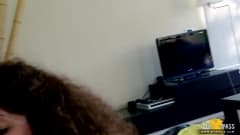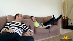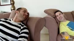 Enquanto esses dois amigos viam o seu show de TV favorito, suas namoradas chegam ao mesmo tempo para fazer sexo com eles ali mesmo.