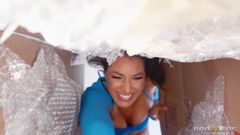 Bella Rolland ficou presa dentro de uma caixa com a bunda para fora! Ela chama seu amigo Ryan em busca de ajuda, ele não pode resistir e chupa sua buceta.