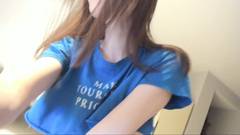 Essa morena magrinha se coloca na frente da câmera para provocar você. Ela fica nua e lubrifica seu corpo magro e sexy e seus seios grandes, brincando