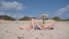 Duas jovens lésbicas passam um dia ensolarado em uma bela praia. Elas tomam banho de sol, jogam bola e nadam nuas antes de se deitarem na areia para relaxar.