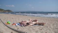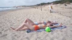 Jovens lésbicas passam o dia em uma das melhores praias de nudismo