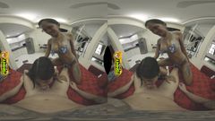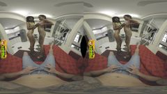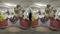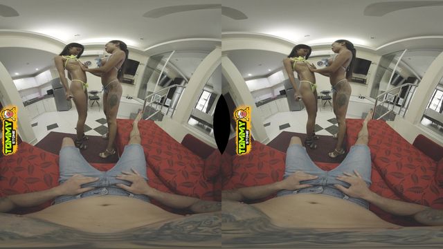 Cherry Lee e Maya Carter, em um trio, engolem cada cm de pau, beijando-se com a língua cheia, fodendo em vaqueira, terminando com uma mamada babosa em POV.