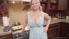 London River notou que seu enteado estava olhando para seus peitos gordos e naturais e, como não há mais ninguém na casa, decide fazer um boquete nele.