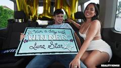 O sortudo Kai Jaxon ganhou o concurso para conhecer sua estrela pornô favorita, Luna Star. Eles entram na van e ela começa a trabalhar e o chupa.